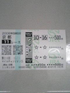 メンバ的に去年よりは少し寂しい気がする今年のレース。正直あまり考えてなかったのでダイワメジャーとデアリングハート軸の3連複と別にダイワ軸の相手人気薄を数頭入れた3連複。後はダイワとシンボリのワイドとダイワとニューベリーのワイドを購入。