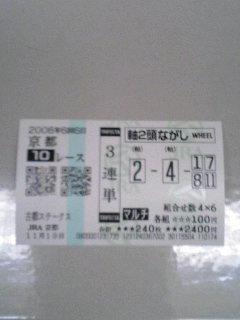 結果はおしくも4着。ただ3着までに来た馬は相手にまったく入れてなかった馬たちだったのではずれたのは仕方がなかった。