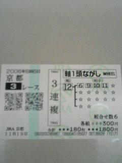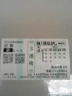 この時点で5千円近くマイナス。かなりやばくなってきたので買う額を少し抑えて京都6Rに挑む。