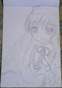 ネットで翠星石の画像を引っ張り出してそれを参考に描いてみたけど、やっぱり難しいなぁ。